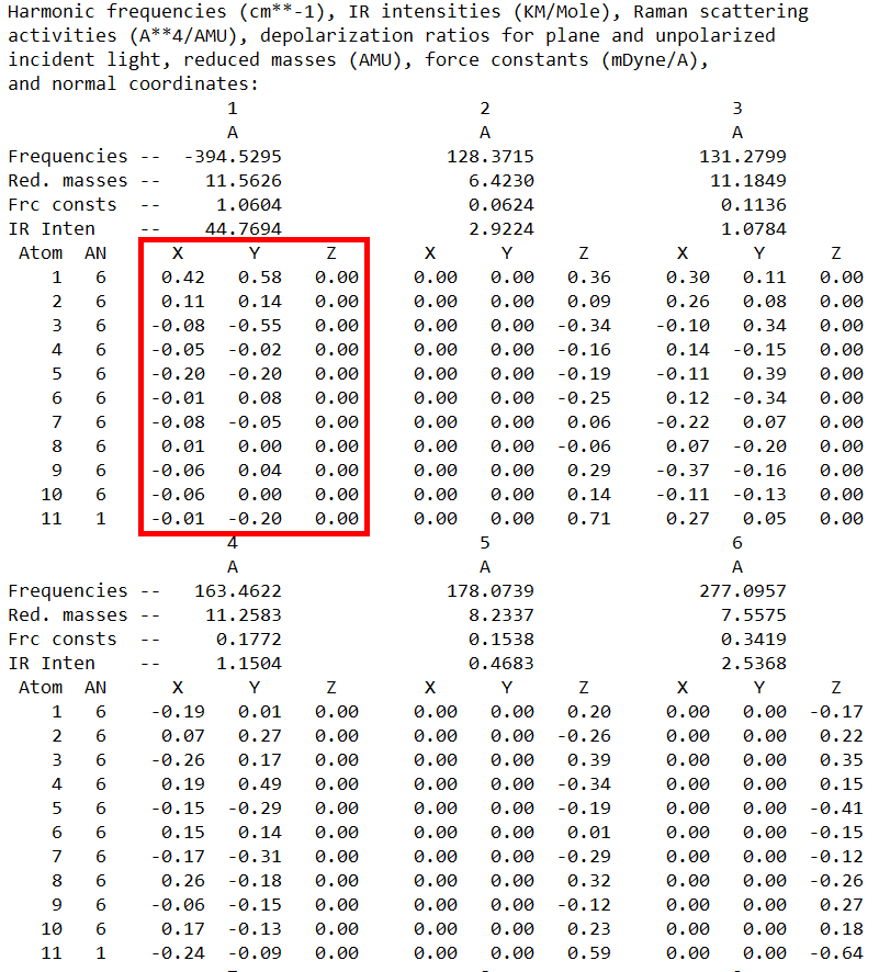 The file.log is provided after frequencies calculation using Gaussian16.